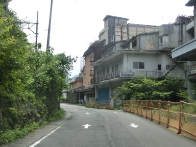 | 390.鬼怒川公園駅の西を走る | 391.鬼怒川温泉には廃ホテルが多い | 392.営業している店舗もある |