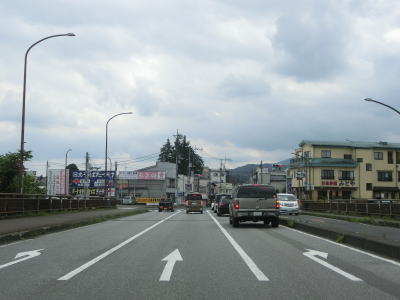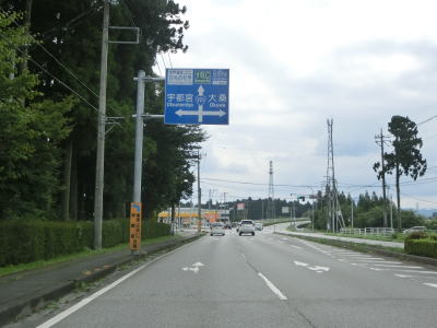 | 大谷向交差点を過ぎると大谷橋で大谷川を渡る。橋上は片側2車線だが南詰の栃木r248川原町交差点で左側車線が左折専用車線になってしまう。そのため国道を直進する場合は右側車線を走っている必要がある。 川原町交差点からは日光市の市街地と言える場所を走っているため沿線の建物だけでなく交通量も非常に多い。緩やかな上り勾配後にやや急な勾配を下って東武鉄道日光線の下をくぐる。アンダーパスからの緩やかな勾配を上った後にR119・R121春日町交差点に至る。案内標識にはR119のおにぎりしか表記されていないが、R121もR352も左折の宇都宮方面に重複している。ウオッちずでは直進の今市ICまでの区間がR121となっているが、案内標識におにぎりは表記されていない。R121・R400早坂交差点からの距離は約57kmである。 |