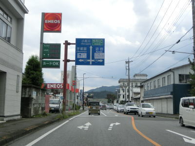 | 上三依交差点からはR400の重複は解消されるが、R121との重複区間は続いている。R121との重複はかなりの距離になるが、串刺しおにぎりが設置されており重複している事が分かる。R352に限らず栃木県内は串刺しおにぎりの設置率が高い。野岩鉄道とともに男鹿川の右岸を走っていると橋梁の下をくぐる。 | ||