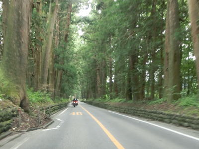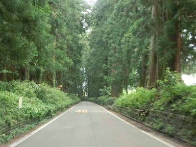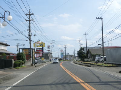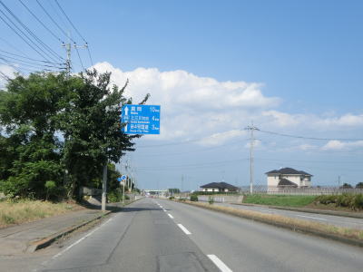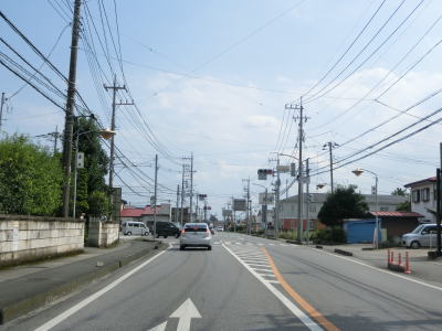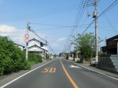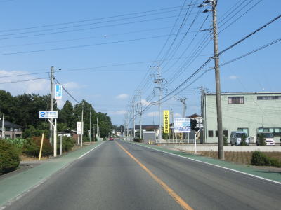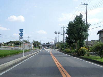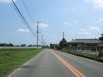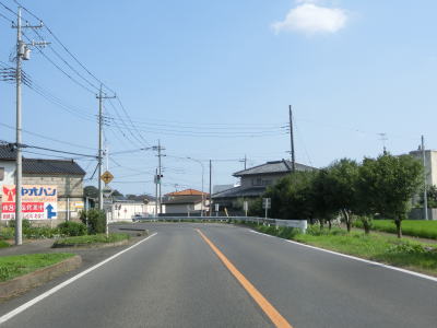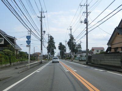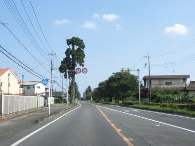 | 杉並木の密度が小さくなった所で市境を越えて鹿沼市に入る。杉並木自体は続いているが、これまでのように鬱蒼とした雰囲気ではない。家屋が点在する中を緩やかに下る直線基調の2車線道路を南下する。 | ||