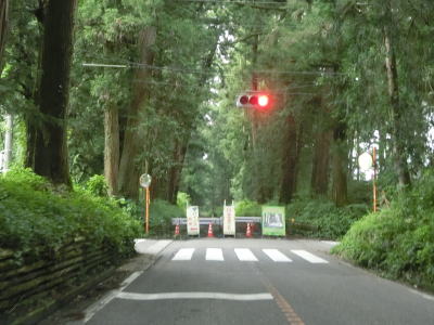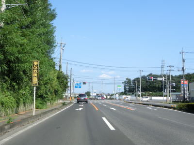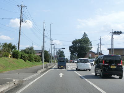 | 小倉町交差点からは1.8車線幅と少々狭くなる。杉並木の中を通っているおり歴史のある街道なのだろうが、その杉並木があるが故に拡幅もできないのだろう。約400m走ると小倉町歩道橋交差点に至る市道との交差点を通過する。 | ||