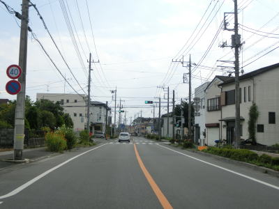 | 417.制限速度は40km/h | 418.JR日光線の日光街道踏切 | 419.道路に面した家屋は少ない |