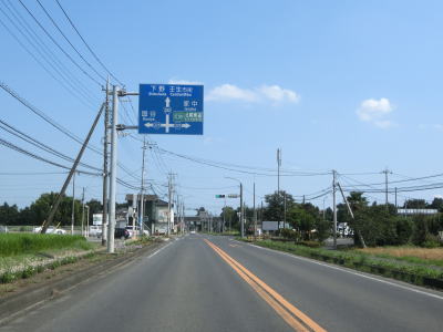 | 三好町交差点を過ぎてすぐに東武鉄道宇都宮線の宇第54号踏切を通過する。歩道が設置されておらず路側帯が緑色に塗られている2車線道路を走っていると下野市に入る。下野市に入って一つ目の信号機付きの交差点からは広い中央分離帯の片側1車線道路になる。 | ||