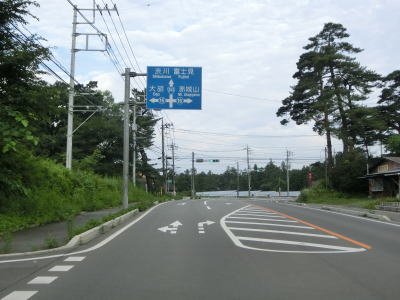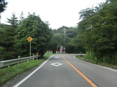 | 2車線の直線道路を走っていると荒砥川を渡るが、この橋にも中央分離帯が設置されている。橋を渡り終えてすぐに群馬r16三夜沢町交差点を通過する。右折してr16を北上すると赤城山に行く事ができるが、狭路かつ急勾配の道路のようである。 | ||