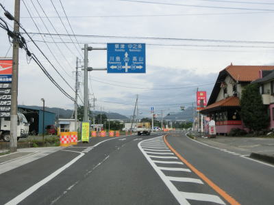 | 栃田トンネルを出てすぐに群馬r55との交差点を通過する。暮坂峠を経て草津に向かうr55は日本ロマンチック街道の一部である。R353はアップダウンとカーブを繰り返す2車線道路を快走する。国道としては行止りに向かっているせいもあって交通量は多くない。 | ||