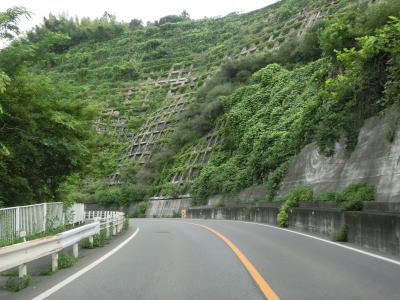| 駒岩集落をパスするバイパスが終わった所でメロディーライン区間が始まる。ここの曲目は千と千尋に神隠しの主題歌の『いつも何度でも』である。メロディーラインが終わってからも緩やかな上り勾配の2車線道路が続いている。町道の四万岩本線との交差点を通過するが、この町道は分断区間の迂回路となる道路である。 | ||
