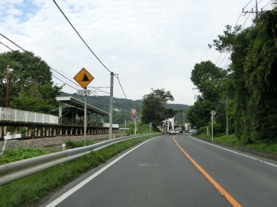 | JR吾妻線のガードをくぐった先で道の駅「おのこ」を通過する。「こもち」との距離は約7.4kmと比較的近いが、それぞれできた当初は子持村と小野上村という別の自治体であった。道の駅からも吾妻川沿いを走っているが、これより西は川が渋川市と東吾妻町の境を成している。 | ||