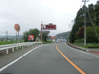 | 群馬r240市城交差点を通過して少し走ると市城駅の前を通過する。JR吾妻線と山に挟まれた間を走っていると電光掲示板の下を通る。通行時に表示されていたのはR292の道路情報で、殺生河原駐車場と万座ハイウェーとの三差路の間が8〜17時は通行可能というものであった。これは草津白根山の火山活動に伴う規制である。吾妻線に沿って北西の方角に向かって走っていると松見橋を渡る。下流側には吾妻線の橋梁も架けられている。 | ||