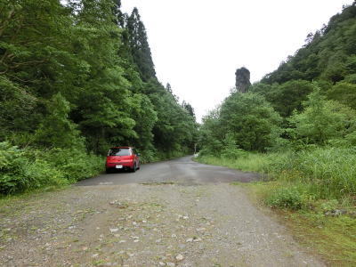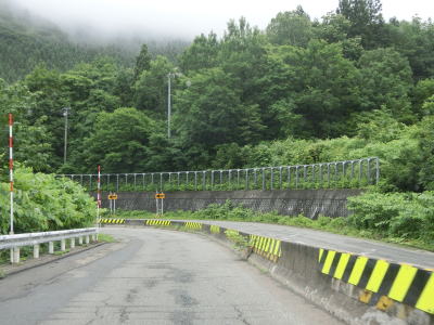 | 55km、1時間半の迂回を経て新潟県湯沢町の端点に到着する。新潟県側の端点は砂利道のようなものが繋がっているが、これは道路建設予定地ではない。かつては三国スキー場があったのだが、2005年に閉鎖されており、その後植生回復のために植林が行われている。 | ||