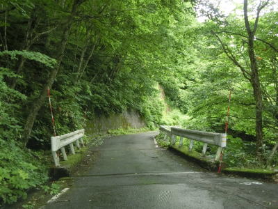 | 155.端点から改めて走り始める | 156.スキー場のアクセス道路だった割に貧弱な道路状況 | 157.湯之沢川の谷筋を走る |