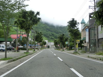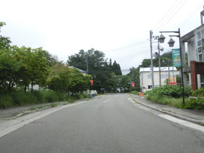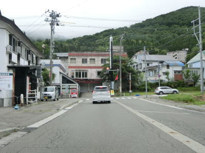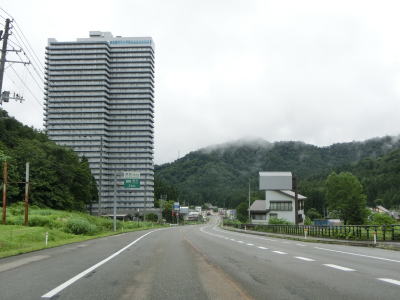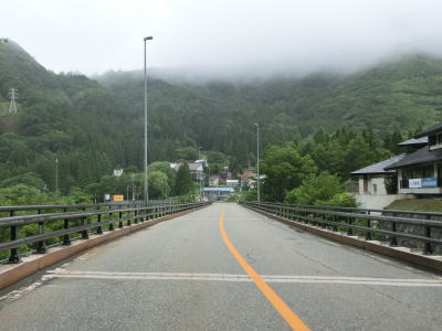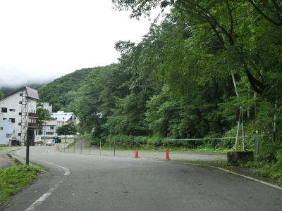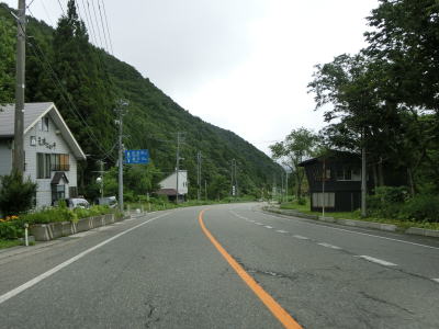 | 産廃会社の前の右カーブを曲がった先で湯之沢川川を渡る。その後少し走ると景色が開けると同時に道幅が広くなる。周囲にはホテルや民宿等がが建っており、苗場スキー場を核とする観光エリアに入る。狭路区間の距離は約2.9kmである。かつてスキー場があったとは思えない程貧弱な道路状況である。 | ||