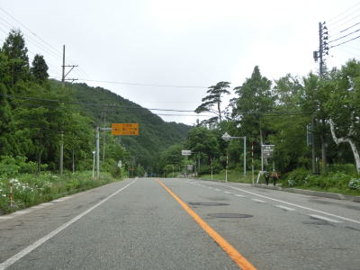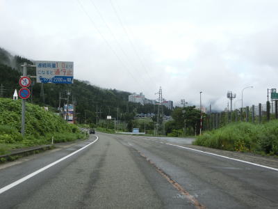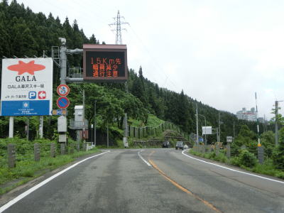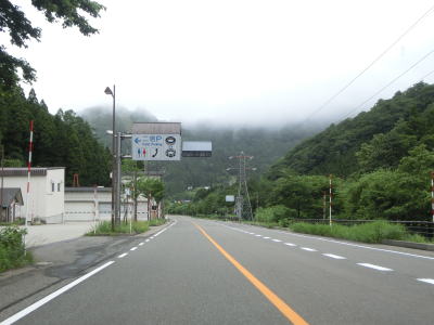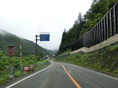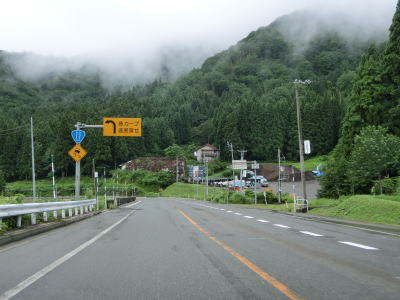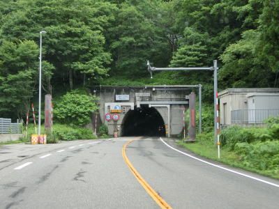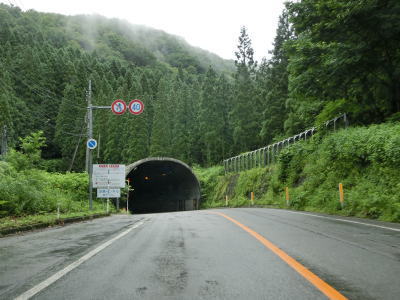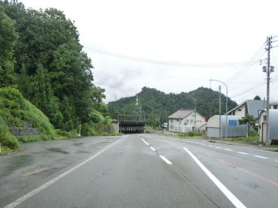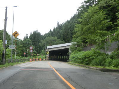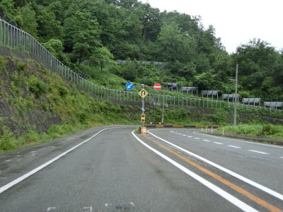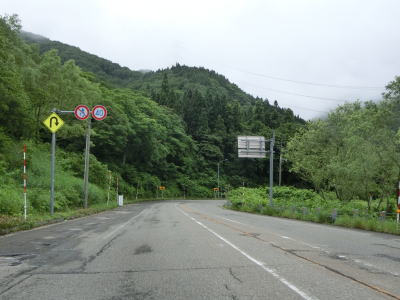 | 浅貝交差点からは二桁国道との重複区間となるため交通量は増える。もっとも3連休とは言えスキーシーズンではないため多少増える程度である。ホテル等が建ち並ぶ苗場エリアを出ると同時に上り勾配となって雨量通行規制区間に入る。通行止になる規制値は連続雨量180mm超と山岳酷道に比べると高い数字に設定されている。勾配を上っていると火打1号雪覆道に入るが、出るのは5号洞門である。1号〜5号の雪覆道もしくは洞門が繋がってひとつになったのだろう。5号洞門の直後の6号雪覆道は単独のまま残っている。 | ||