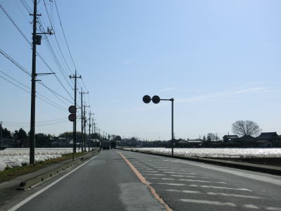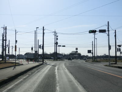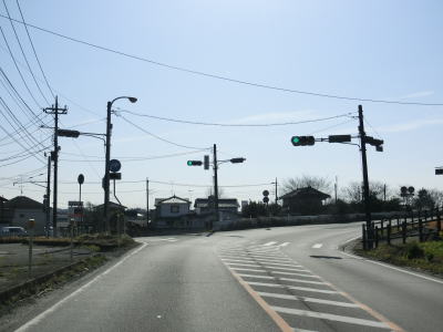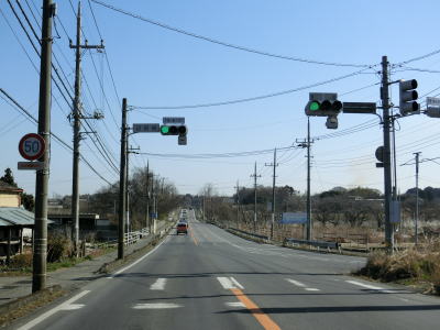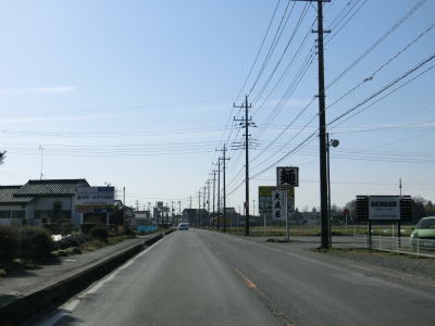 | 坂東市に入ってからもほぼ平坦な2車線道路を続いており、交通量が多くない事もあって走りやすい。沿線は家屋と田畑が混在しており見通しも良い。ライブラインという広域農道とのみむら交差点を通過する。 | ||