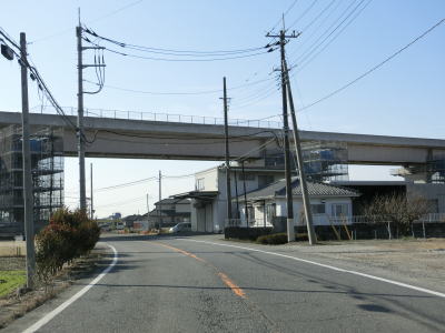 | R4大堤交差点からも2車線道路が続いており、やや交通量は多いものの流れはスムースでそれなりに走りやすい。東北新幹線の高架橋をくぐって緩やかな右カーブを曲がってから茨城r56釈迦北交差点を通過する。 | ||