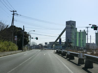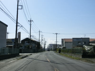 | 上出島交差点からも対面2車線道路だが歩道は片側にしか設置されておらず走りやすいとは言い難いが、平坦でほとんど勾配もないため見通しは良い。沿線には中小から大規模なものな工場があり平日の昼間は大型貨物車両の通行も多いと思われる。緩やかな左カーブを曲がった後に市道との岩井公民館北交差点を通過する。“公民館”というと小規模な施設を思い浮かべるが、岩井公民館は野球場や陸上競技場、体育館を備えた総合運動公園である。 | ||