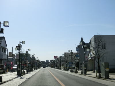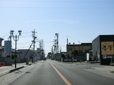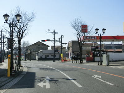 | 岩井公民館北交差点付近からは坂東市の市街地と呼べる場所に差し掛かり、市道との岩井交番西交差点を右折し、直後に茨城r20岩井交番交差点と茨城r125交差点を相次いで通過する。その後は無電柱化された商店街だった場所を思われる場所を走り抜ける。 | ||