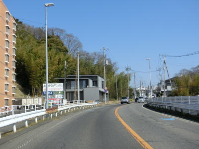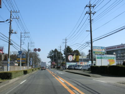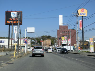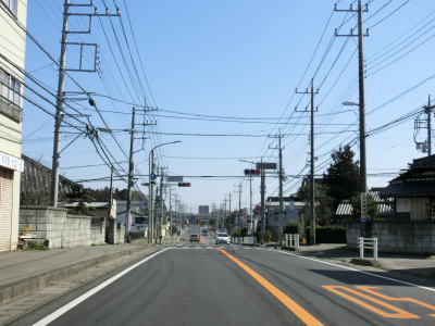 | 中村陸橋下交差点の直後に東橋を渡って直線道路を上って行く。旧水戸街道との交差点付近からは平坦になり、同時に沿線の建物が増える。土浦市の中心部からはやや離れているものの商業施設が建ち並んでおり交通量も多い。 | ||