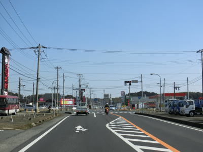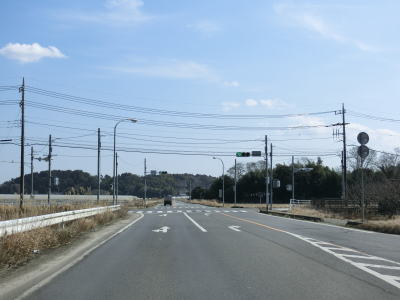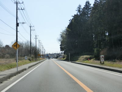 | 茨城r141交差点以降も2車線道路快走路が続いている。旧道と思われる市道が交差している右カーブを曲がると沿線の家屋が途切れるが、道路状況は変わらず走りやすいままである。 | ||