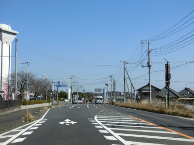| 霞ヶ浦大橋を渡り終えた直後に東詰で道の駅「たまつくり」を通過する。霞ヶ浦大橋はかつては有料であり、道の駅のメインの建物は料金所の事務所だった場所に建てられている。また、対岸からも見えていた塔は虹の塔という展望塔である。緩やかな右カーブを描く2車線道路を少し走るとR355高須交差点を通過する。交差点の北西と北東には商業施設が集中している。 | ||