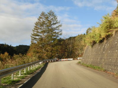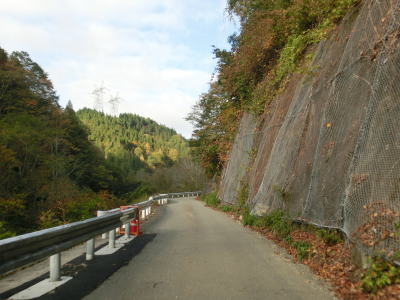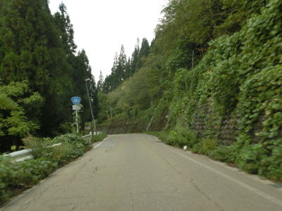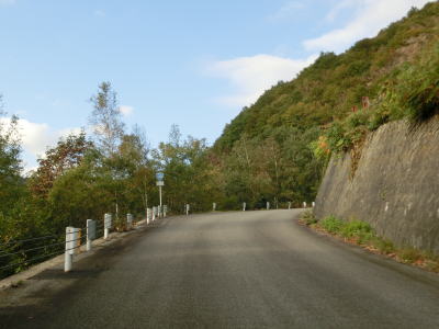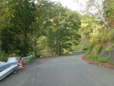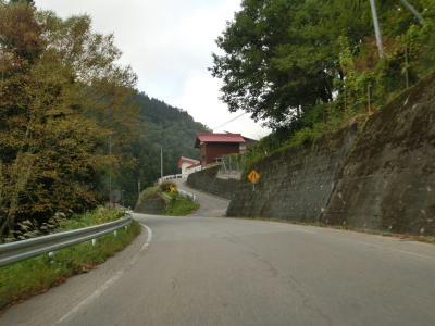 | ガードレール工事の資材置き場になっている場所を通り過ぎると工事箇所もなくなるかと思いきや、工事が完了している箇所があった。また、ヘアピンカーブを含む急カーブが連続するようになり、勾配自体はさほど急ではないがヘアピンカーブで標高を上げる形になる。 | ||