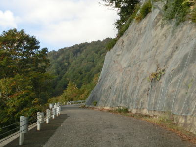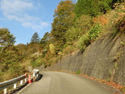 | 147.木々が色付き始めている | 148.「落石危険のため 駐車禁止」 | 149.ガードレールが移設されたせいで離合が難しくなっている |