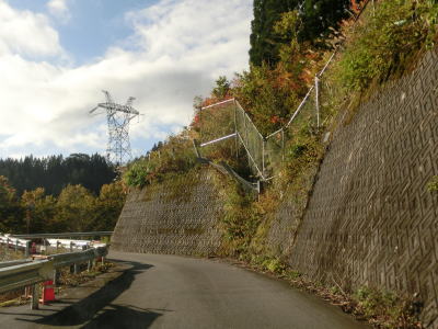 | ガードロープが設置された区間もあるが、それも一部の支柱が建て替えられている。中には1本だけ道路中心側に替えられているのもあり、谷側を走っていると接触しないように注意しなければならなくなっている。ガードレールであれば1本単位で道路中心側に寄ってきている事はないが、複数の支柱に跨って寄っている箇所がある。要するの2018年の夏に行われた工事のせいで走りにくさが向上している。 | ||