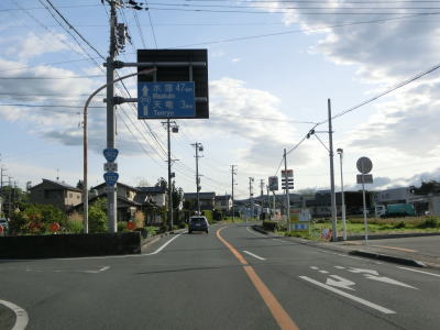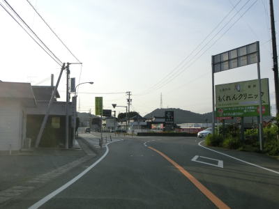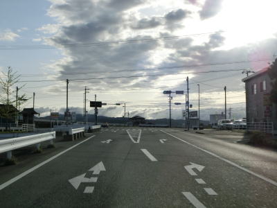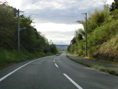 | 麁玉中学校北交差点を過ぎると対面2車線道路になり、さらに下がった後の左カーブ付近から平坦になる。北側には拡幅用地と思われる空き地が確保されており、宮口バイパスのほぼ全線が片側2車線で計画されている事が分かる。 尾野高根交差点を通過するが、この交差点が宮口バイパスの東端であり現道との交差点である。現道は交差点から南西に延びる道路だが、ガードレールとラバーポールで塞がれており車両での通行はできない。そのため現道を走れば完全トレースは不可能になってしまう。 |
