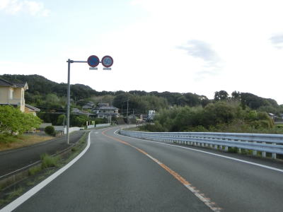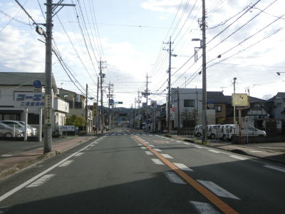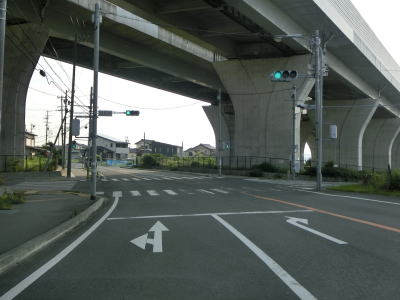 | 都田テクノ北交差点を左折してすぐに左側車線が減少するが、本来車線であるスペースにガードレールが設置されて車両での通行ができなくされている。沿線には工業団地が造成されており、本格的に稼働すると片側2車線になるのだろうか。 工業団地の東端で天竜浜名湖鉄道のトンネルを上を通るが、その辺りで浜松市北区から浜北区に入る。浜北区に入ってからは下り勾配になる。緩やかながら長い勾配を下っていると静岡r68交差点と静岡r296麁玉中学校北交差点を相次いで通過する。 |