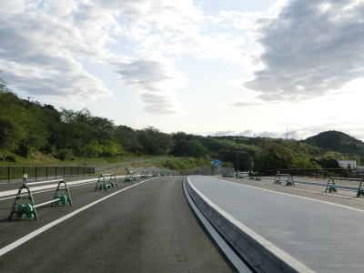 | 69.対面2車線道路に戻る | 70.拡幅用地が確保されている | 71.R362現道との尾野高根交差点 |