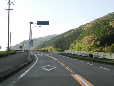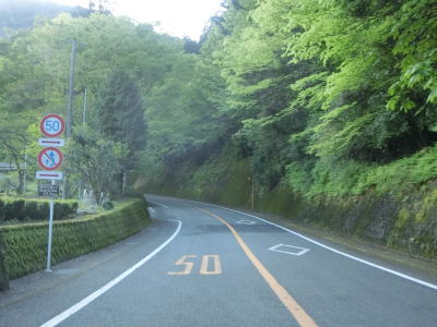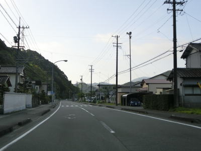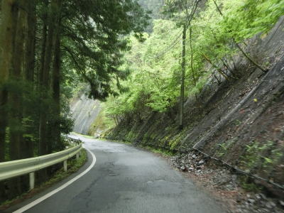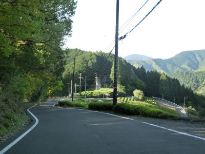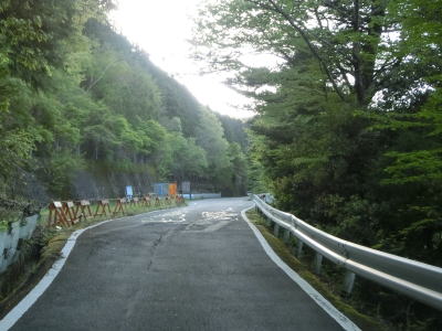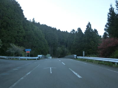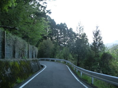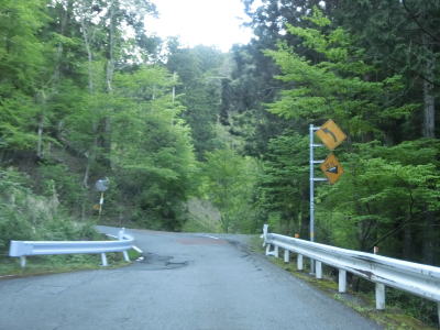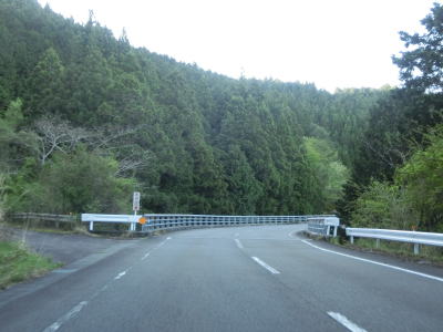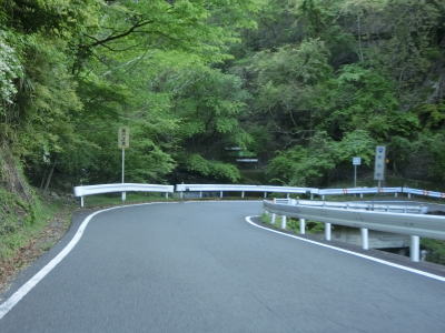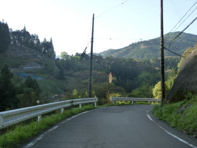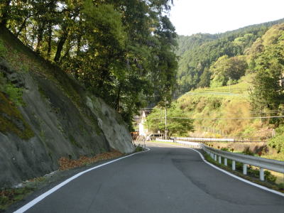 | ヘアピンカーブ区間が終わってからも下り勾配の狭路が続く。集落を通り抜けているものの早朝であれば交通量は非常に少ない。中塚集落でも1ヶ所だけヘアピンカーブがある。 | ||