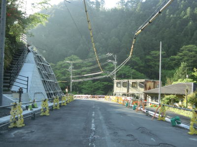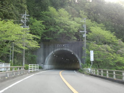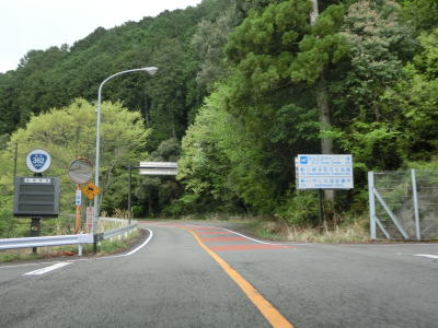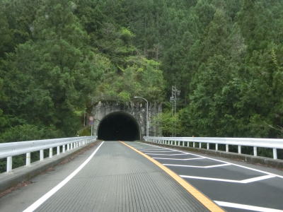 | 要害橋を渡った先に異常気象時通行規制区間である旨を示す標識が設置されている。それによると川根本町富士城〜静岡市葵区久能尾の間が連続雨量120mm超で通行止になる。平溝橋を渡って小長井トンネルをくぐる。トンネルを出ると馬路大橋で深い谷を渡って馬路トンネルに入い…らずに直前を右方向へ進む。開通していない割に坑口がやや汚れているのは、完成したのが2003年と20年近く経過しているためである。にもかかわらず馬路トンネルを含む区間は供用されていない。橋梁をあと1本架ければ開通するというところまでは進んでいるようだが…。なお、トンネル手前を左方向に延びる道路は小長井トンネルの旧道だが、おそらく車両での通行はできないと思われる。 | ||