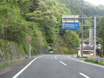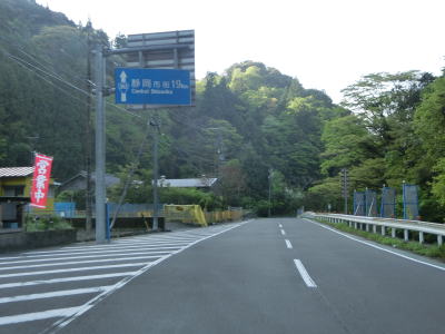 | 静岡r77交差点から約11.6km、馬路トンネル西側坑口から約8.3kmで市町境を越えて静岡市葵区に入る。政令指定都市に入った訳だが、道幅は1.0車線幅で横断歩道の線は僅か4本である。勾配も12〜13%と非常に急だが、景色が開けており眺望は良好である。市町境の直後から家屋があり、沿線や少し外れた所にも複数の家屋が建っている。小学校は廃校になっているが、廃校になったのは2021年3月と最近である。R362は茶畑の間を縫うようにヘアピンカーブが連続した急勾配の狭路を下る。 | ||
