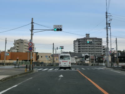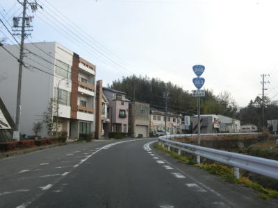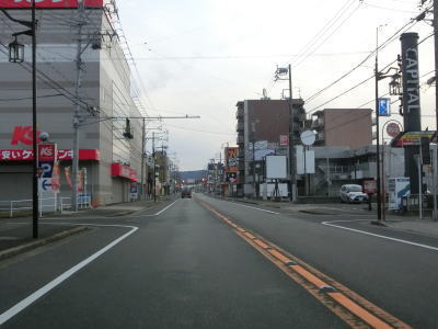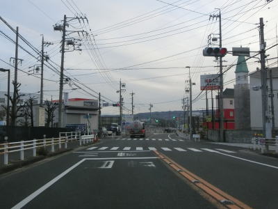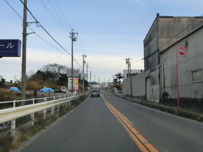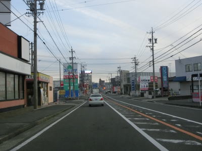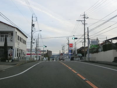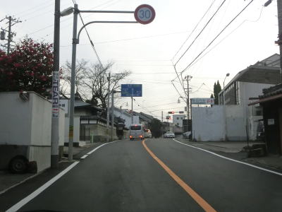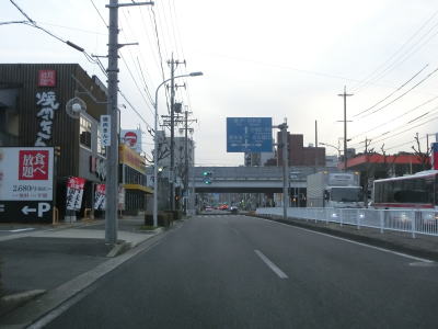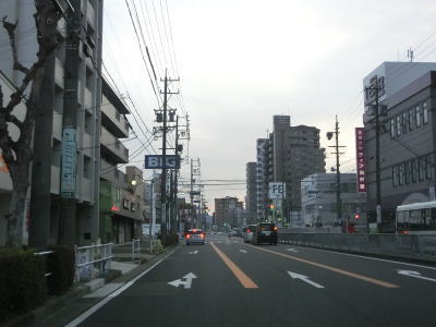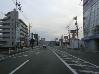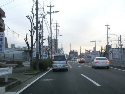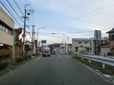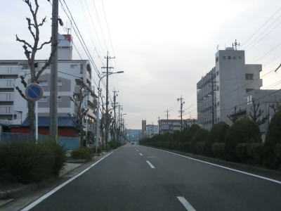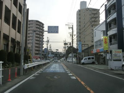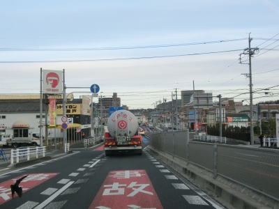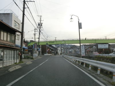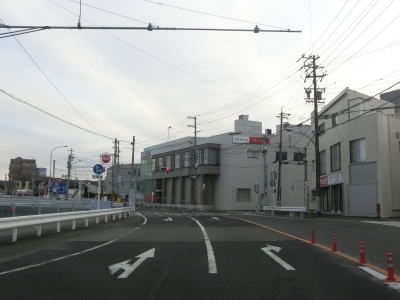 | 記念橋北交差点からは瀬戸橋を挟んだ片側1車線道路になる。川に街を分断されている形だが、多くの橋が架かっているためさほど不便ではないのかもしれない。道幅は狭いが対向車が現れないので比較的スムースに流れている。 | ||