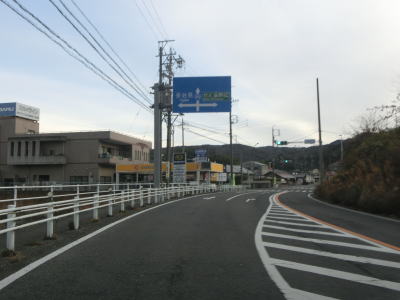 | 市境を越えてからもしばらくは反対側車線の登坂車線が続いている。登坂車線がなくなるとほぼ同時に最初の集落を通り抜ける。大川橋を渡ると上り勾配となりその先でR419陶町大川交差点を通過する。市の中心部から離れた場所だが、この交差点がR419の起点である。 | ||