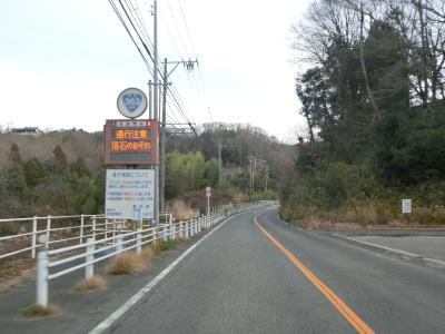 | 緩やかな右カーブの先でR475/C3東海環状道のせと品野ICを通過する。インターチェンジは右折で、左折して市道と北上するとR363瀬戸バイパスに行く事ができるが、市道との交差点より東の区間が未供用である。 せと品野ICを過ぎて上品野町集落を通り抜けると異常気象時通行規制区間に入る。規制区間の延長は4.3kmなので県境までと思われる。通行止になる規制値は時間雨量が400mm、連続雨量が150mmとなっている。異常気象時通行規制区間に入ってからは沿線の建物は少なくなる。カーブの多い上り勾配の2車線道路を走っているとR475/C3の白岩橋の下をくぐる。 |