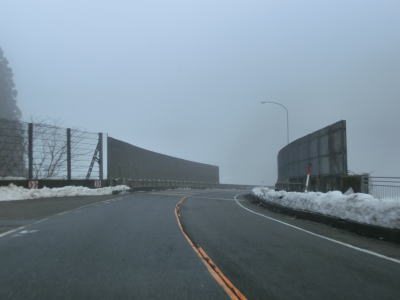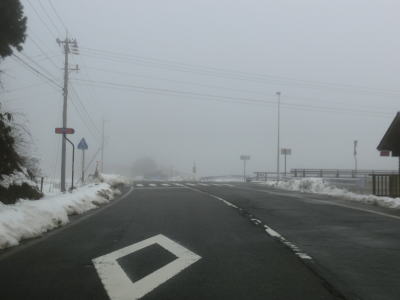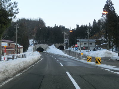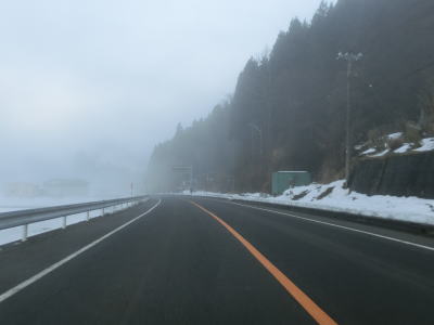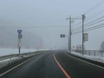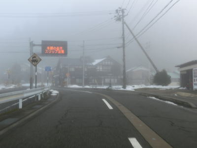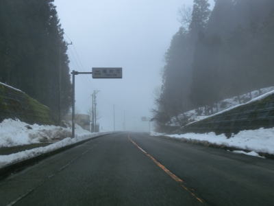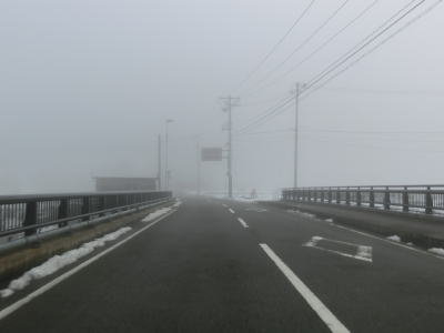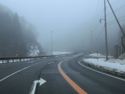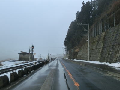 | 犬山交差点からは車線が減って対面2車線になるが、平坦な直線道路のため非常に走りやすい。下丁集落からは上りとなるが勾配は緩やかである。勾配を上っていると新丁トンネルをくぐって福井市に入る。トンネルを出ると霧が発生していた。No.11とNo.12の撮影時間の違いはトンネルを通過した時間分だけで別の日や別の時間ではない。 | ||