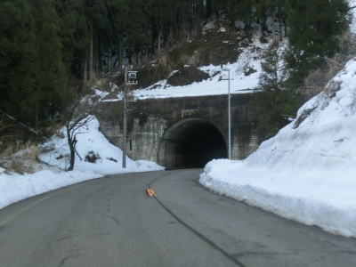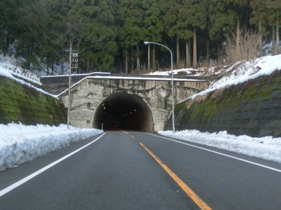 | 高田交差点から約4.1kmで宇坂トンネルに入る。ほぼ直線のトンネルの中ほどで市町境を通過して永平寺町に入る。トンネルからは下りとなるが、こちら側の勾配も急であり、ヘアピンカーブも2ヶ所ある。左ヘアピンカーブを通過すると前方に永平寺の門前町の集落が見えてくる。 | ||