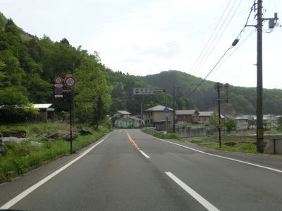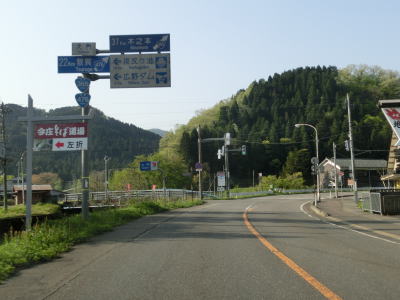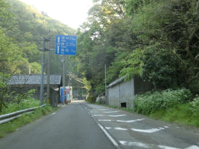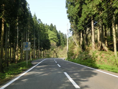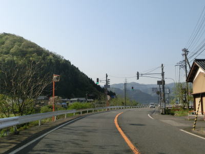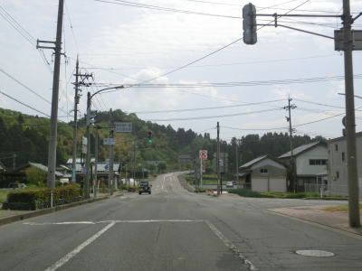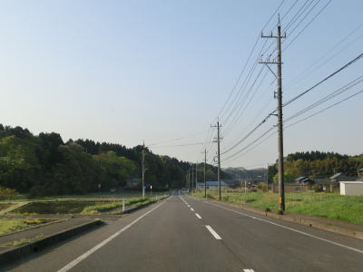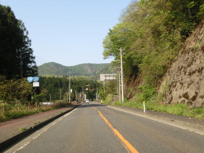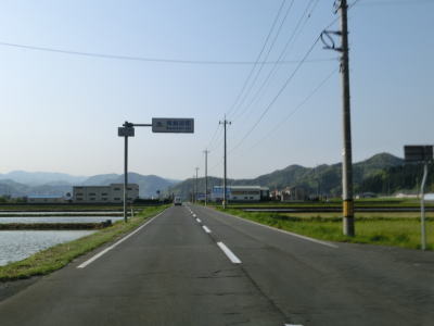 | 樫津東交差点からも2車線道路が続いている。山裾を走っているとは言え開けた場所なので見通しが良く、カーブは多いものの緩やかなものばかりなので走りやすい。緩やかなアップダウンを繰り返した後に八田集落を通り過ぎ、八田トンネルに入る。 | ||