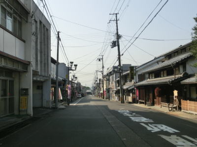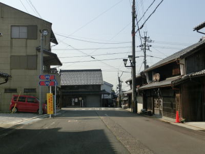 | 木之本IC口交差点からはR8・R303・R365の3本の国道の重複区間である。3本以上の国道の重複区間自体はさほど珍しいものではないが、この3国道重複区間には3つ串刺しおにぎりが設置されている事は特筆に値する。3本(以上)の国道の重複区間は数多くあれど全てのおにぎりが設置されている場所は非常に少ない。 3国道重複状態を東進していると北陸道の下を通過し、木之本駅の南西でR8・R303木之本交差点に至る。案内標識には右折方向にR8のおにぎりが表記されており、行き先としてR365関ヶ原方面となっている。さらには支柱に付けられた細長い標識にはR365揖斐川方面を右折として案内している。これらの案内は決して誤りではない。なぜなら木之本交差点を右折してR8とともに進むのもR365(とR303)としてはバイパスとしてより走りやすいルートとして確立されている。しかし、木之本交差点を直進する道路はR365(とR303)の現道として存在している。よってここは直進して現道へと進む。なお、ウォッちずではバイパスルートにはR8とR303のおにぎりしか表記していないので、R365のトレースとしては現道の1本のみの可能性もある。 |