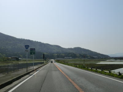 | 緩やかな左カーブを曲がりながら滋賀r244大野木交差点を通過すると集落が途切れて低山に挟まれた谷筋を走る。山を切り開かれて造られたバイパスのような2車線道路を走っていると視界が開ける。 | ||