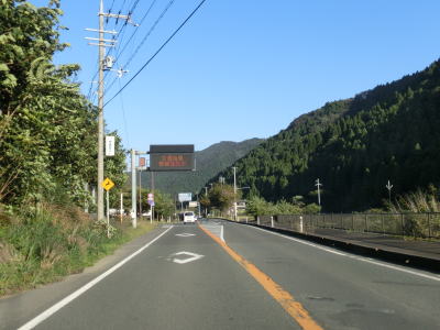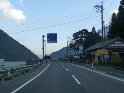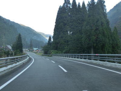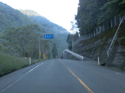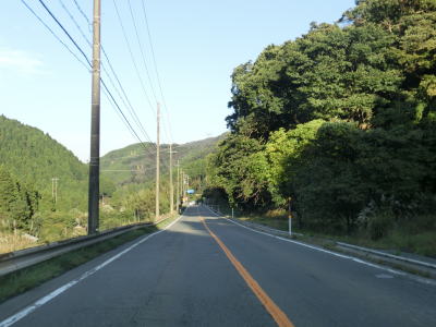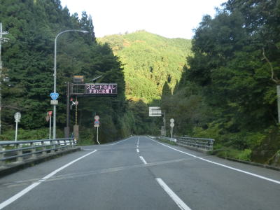 | 滋賀r781交差点からも安曇川沿いの2車線快走路が続いている。若干アップダウンしていたりカーブがきつい場所があるものの概ね快走できる。葛川細川町集落を通り過ぎると市境を通過して高島市に入る。高島までの距離を示す標識が立っていたが、R367が通っているのは旧朽木村域であって現在の高島市の中心部は通っていない。 | ||