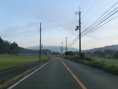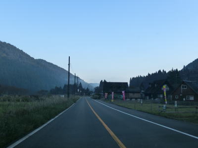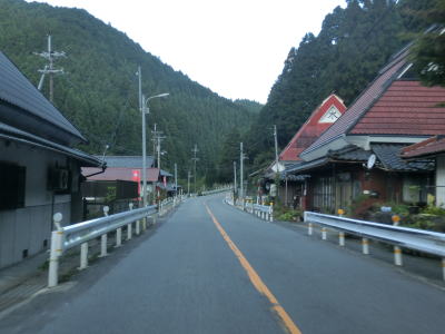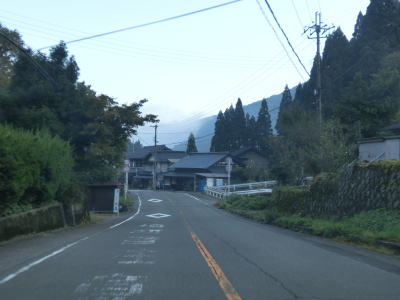 | 68.旧今津町に入る | 69.途中谷川沿いを下る | 70.センターラインが消えている |
