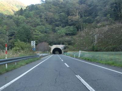 | 花折峠を通る旧道との交差点を通過してからも勾配を上っていると花折トンネルに入る。トンネルからは下り勾配となり安曇川の流域を走り、集落の手前で旧道との交差点を通過する。旧道は1.0〜1.5車線幅の狭路で舗装はされているものの両端ともチェーンが張られており車両での進入はできないが、近畿自然歩道の一部であり登山道も接続しているため徒歩での通行は可能と思われる。 | ||