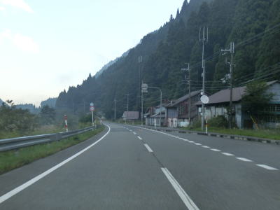 | 高島市に入ってからも緩やかなアップダウンとカーブの2車線快走路が続いている。高島市だけでなく大津市の区間にも言える事だが、集落の点在する山間部を通っている割に沿線には食事処が多く観光路線である事を窺わせる。売出中の住宅用土地もあったが、別荘として利用されるのを想定しているのではなかろうか。 | ||