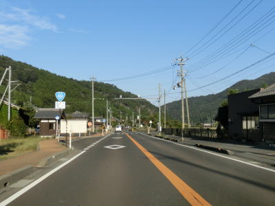 | 県境から約900m走ると福井r130交差点を通過し、隣接する道の駅「若狭熊川宿」の前を通過する。道の駅からは熊川集落と北川に挟まれた状態を北西の方角に向かって走る。その後も北川の左岸を走るが、勾配はほとんどなく緩やかなカーブばかりなので走りやすいと言える。交通量の割に歩道が設置されてない箇所があるので歩行者・自転車には注意を要する。 | ||