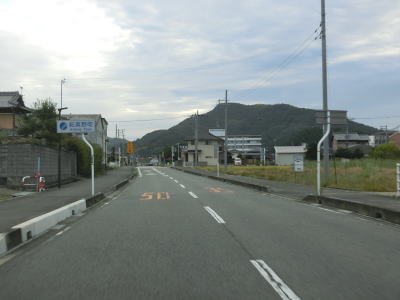 | 野上新橋西詰交差点を右折した直後に野上新橋を渡り、その先で現道との交差点を通過する。ここ現道区間も家屋密集地を通り抜ける狭路とあって案内標識は設置されていない。現道は大型貨物車両の通行が禁止されているが、終日ではなく7〜9時と17〜19時の朝夕の通勤時間帯のみでそれ以外は通行可能である。 現道との交差点からも対面2車線道路が続ているが、阪井バイパスよりも先に供用されたせいか沿線にはそれなりの数の家屋が建っている。また、野上電気鉄道跡を拡幅して整備されたため鉄道跡の痕跡が消滅している。野上新橋西詰交差点から約1.2kmで紀美野町に入る。 |