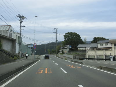 | 貴志川に沿っている辺りにいくつかのコンクリート製の階段があるが、その上はR370現道に繋がっており徒歩であれば現道とバイパスを往来できる(持ち上げられれば自転車でも往来可能だろう)。 紀美野町役場の近くで和歌山r10動木南交差点を通過する。r10を100m強進んだ所に現道が交差している動木交差点があるが、この交差点より東は国道から降格しているようでウオッちずでは市道扱いとなっている。よって阪井バイパスの現道とは異なり国道トレースで現道は利用できない。山裾の家屋密集地を通っていた旧道に対してバイパスは貴志川寄りを通っており、引き続き緩やかなカーブをアップダウンのある2車線道路を走る。 |