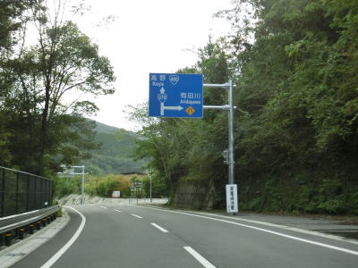 | 桂瀬松ヶ峯トンネルをくぐるが、貴志川沿いの旧道は沿線に家屋があるため閉鎖されていないが、ウオッちずを見る限り国道の指定を外れているようである。その後もカーブの多い2車線道路を走る。道路状況に比して交通量は少なく走りにくさはさほど感じない。 | ||