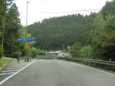 | 蛇行している貴志川の谷筋を走っていると高野町に入る。直後は1.5車線幅区間があるが、概ね1.8車線幅程度あり乗用車で通る分には特別走りにくいというほどではない。高野町に入ってから約1.0kmでR480花坂西交差点に突き当たり、右折して龍神・高野町街方面に進む。ここからはR480が重複している。 | ||