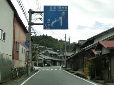 | 宇陀川の流域を北上していると奈良r219万六交差点を通過した先でR166捨生交差点に至る。案内標識にR370のおにぎりは表記されていないが、直進してR166との重複区間を桜井・針IC方面に進む。交差点の西には道の駅「宇陀路大宇陀」があり、交差点が出入口になっている。 | ||